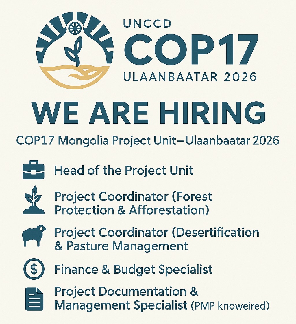 On February 21, 2025 the Government of Mongolia and the United Nations Convention to Combat Desertification (UNCCD) signed an agreement paving the way for the 17th session of the Convention’s Conference of the Parties (COP17) in Ulaanbaatar in 2026.